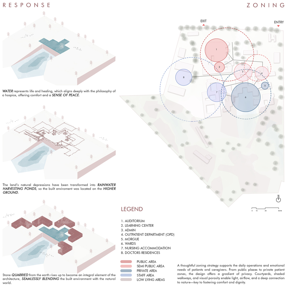 Through thoughtful design, contextual materiality, and sustainable practices, it re-imagines the hospice care facility as a deeply humane and healing experience—where architecture becomes a vessel for dignity, care, and peace.