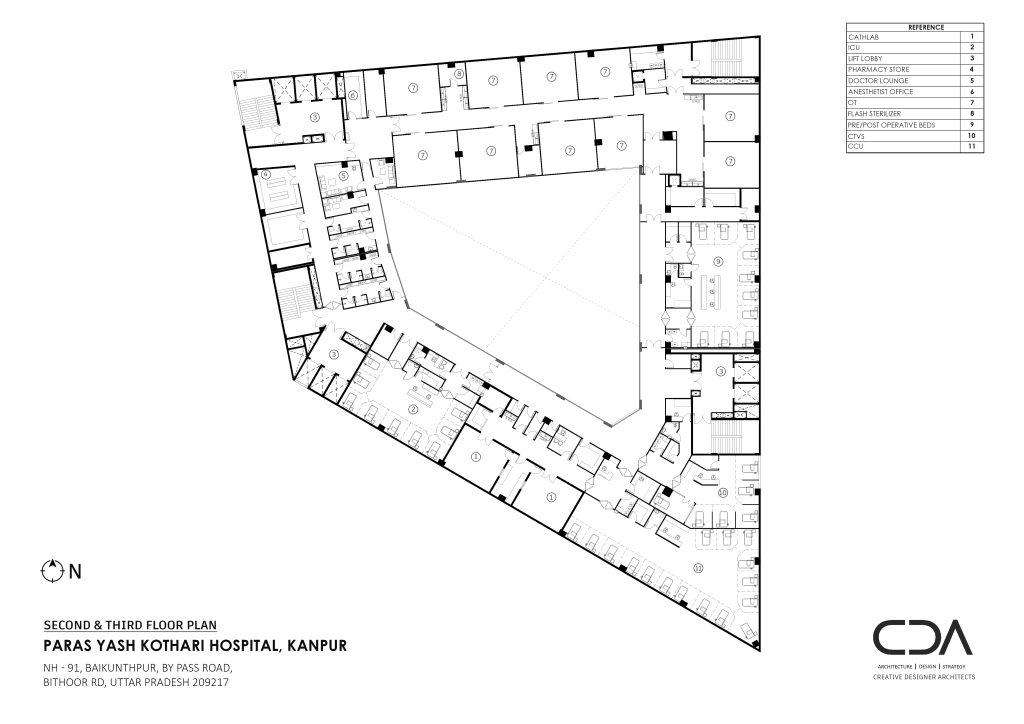 The Paras Yash Kothari Hospital is a 430-bed tertiary care facility that repurposes a derelict construction near the banks of the river Ganges in New Kanpur district, Uttar Pradesh, The hospital building design reflects a thoughtful transformation that caters to the healthcare needs of Kanpur and its surrounding towns and villages with an empathetic and responsive healing environment offering specialized clinical services, predominantly scarce in the sub-urban Uttar Pradesh, one of India’s most populous states. Paras Health appointed CDA to help reinvigorate the defunct infrastructure into a health oasis that is patient-centric and fosters wellness.