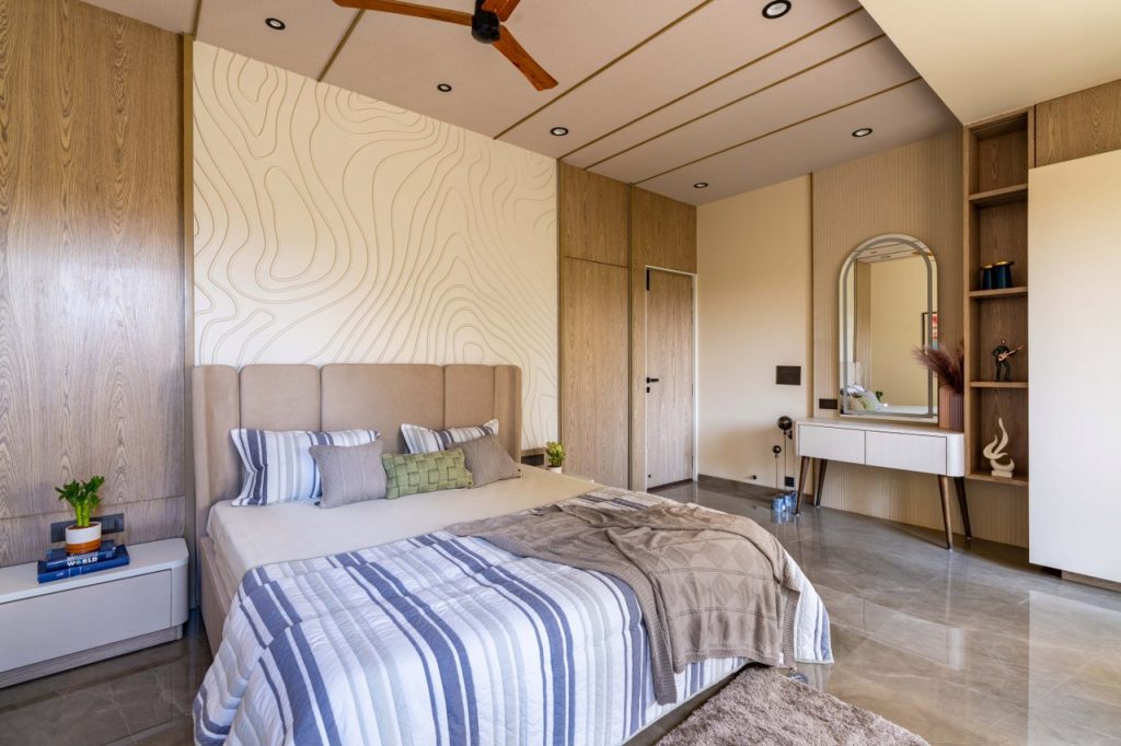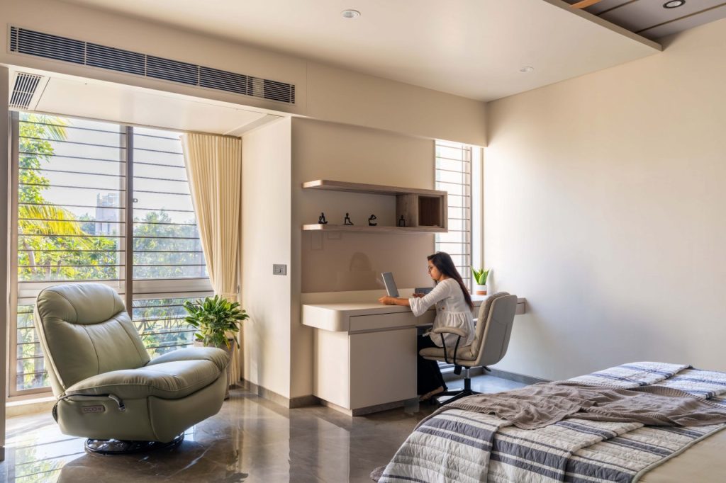 Each bedroom is uniquely designed to reflect the personality of its occupant while maintaining a cohesive language of materials and finishes. The designer tailored every space with purpose, from the serene, minimalist aesthetic of the parents’ bedroom to the vibrant and artistic design of the daughters’ rooms.