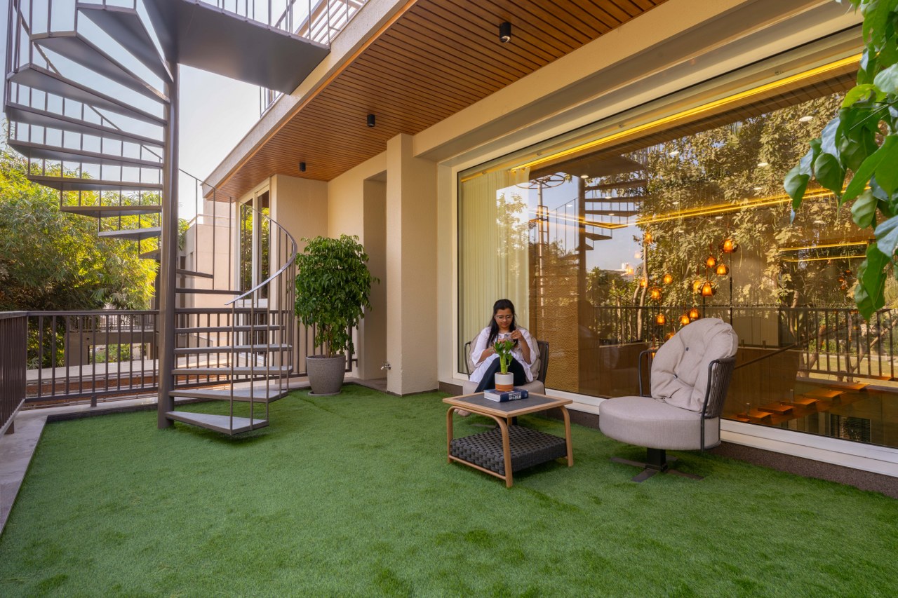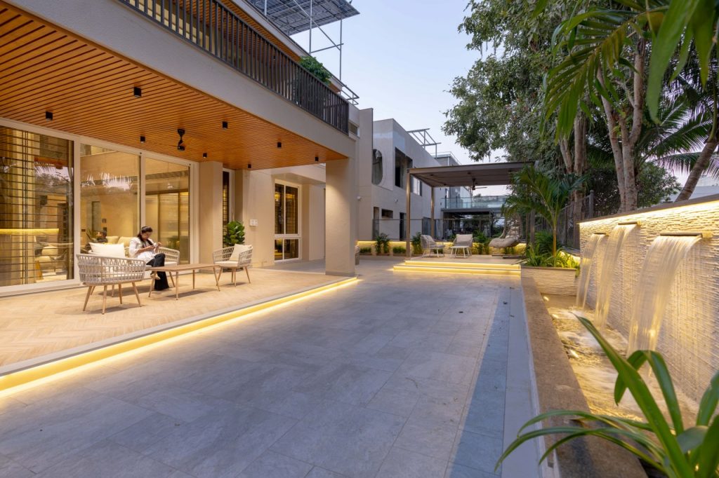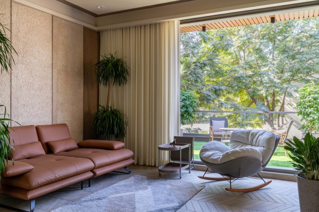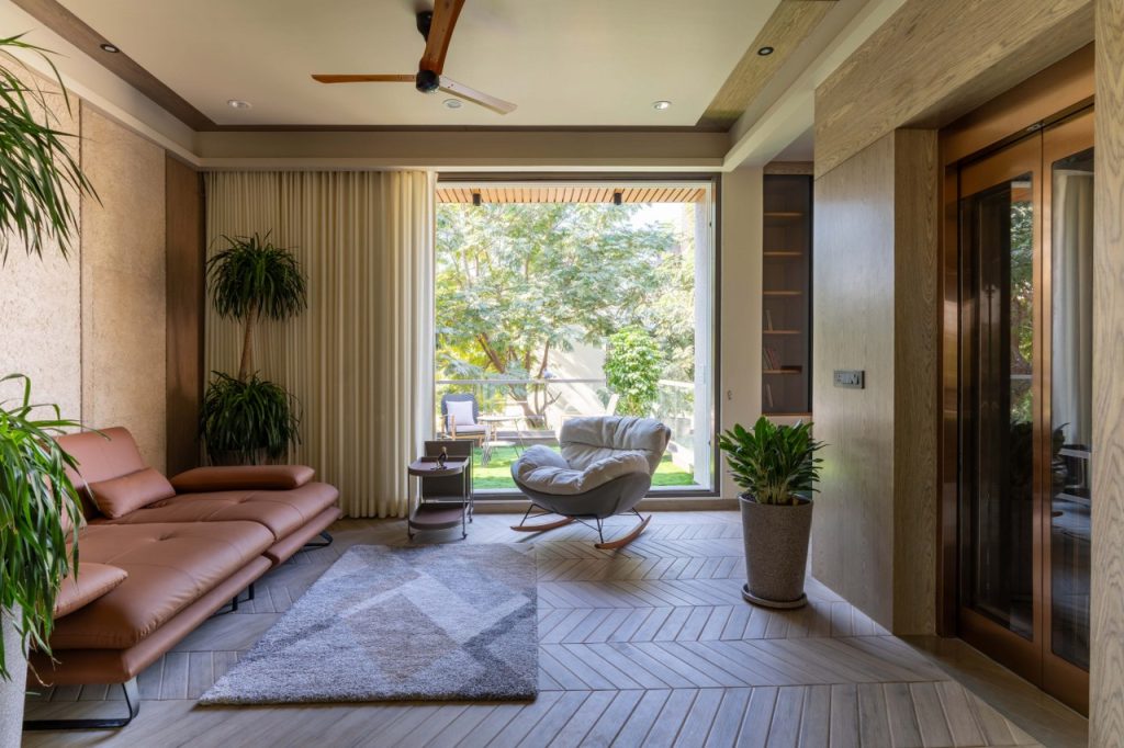 Nestled in the tranquil locality of Shela on the outskirts of Ahmedabad, the AppleWoods Villa is an 8,200 sq. ft. bungalow that has been thoughtfully renovated to reflect a luxurious residence with a harmonious blend of minimal luxury, timeless elegance, and purposeful design.