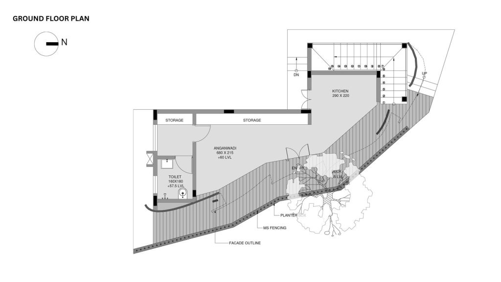 This Anganwadi is not just responsive in form, but responsible in function. Passive design strategies reduce dependence on artificial lighting. Solar panels support energy needs. Locally sourced materials contribute to a lower carbon footprint.