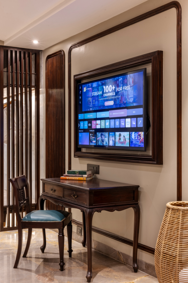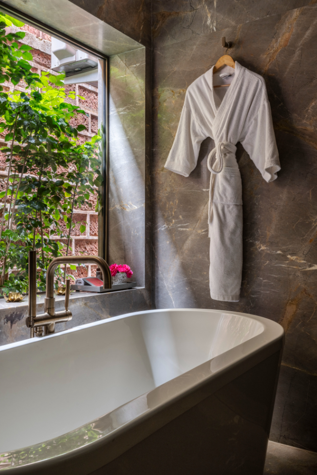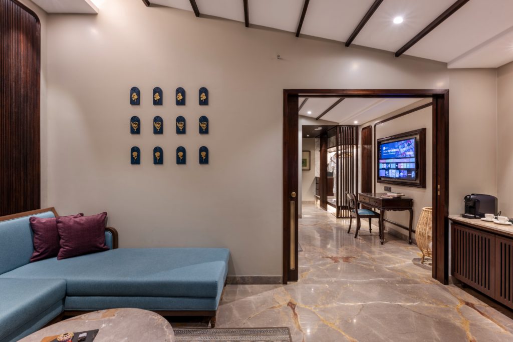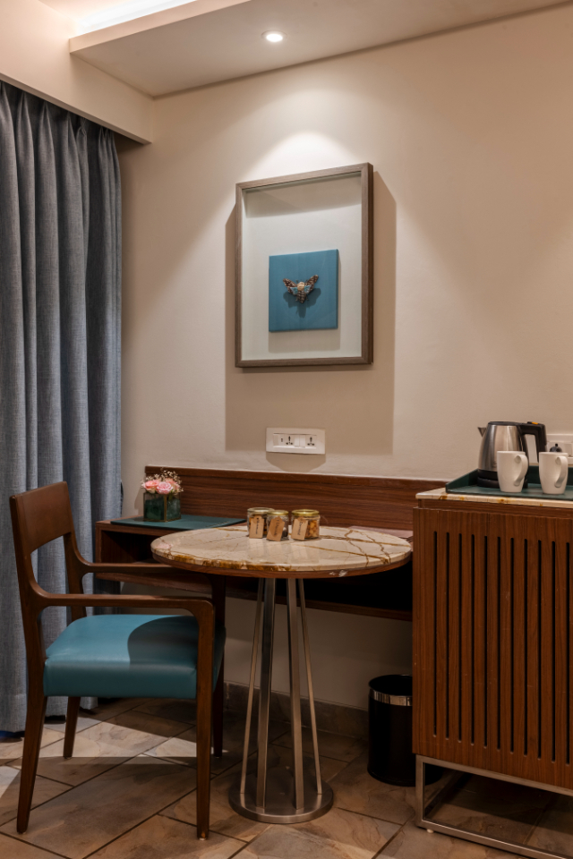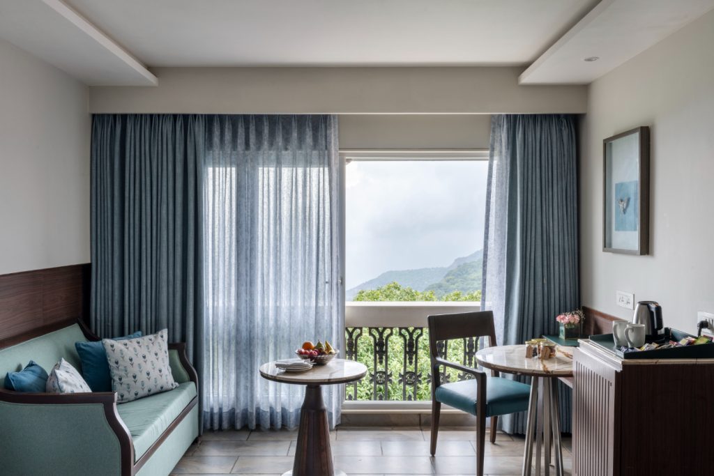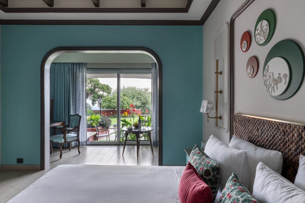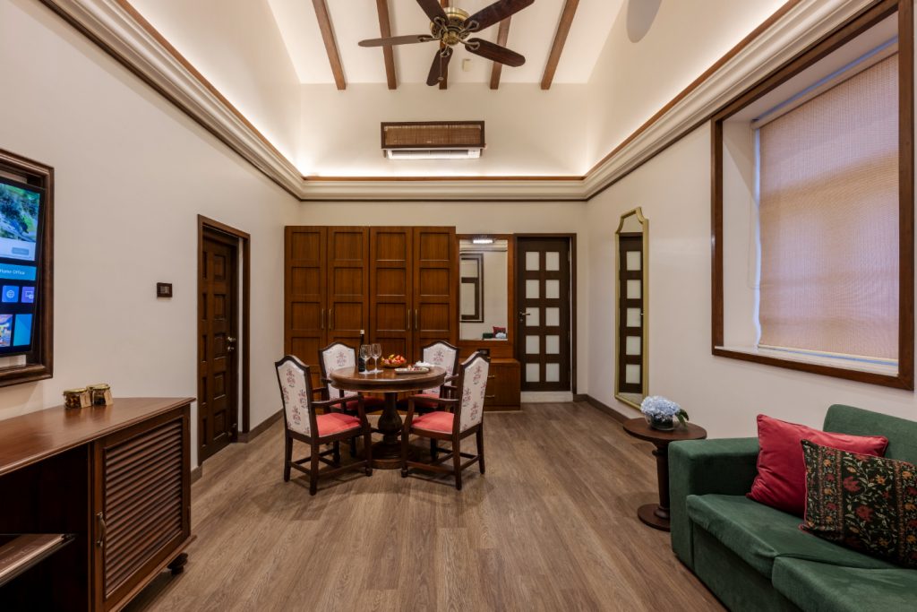 The rooms of the hotel showcase a “bouquet of designs”, merging authentic antique furniture, retaining a historical flavour. The planning ensured that rooms were always visually connected to the outdoors. Whether through large windows framing the hills or garden-facing verandahs, every room offered an experience of immersion in nature.