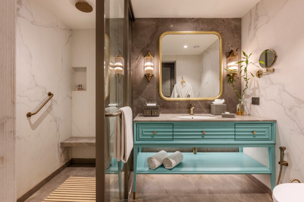 The Presidential Suite features a plunge pool with panoramic views, making it a sought-after space for guests wanting a secluded and quiet luxury. The design didn’t aim to create a single aesthetic thread across the resort, but rather allowed every building to speak in its own voice — an honest reflection of the layered history of the site.