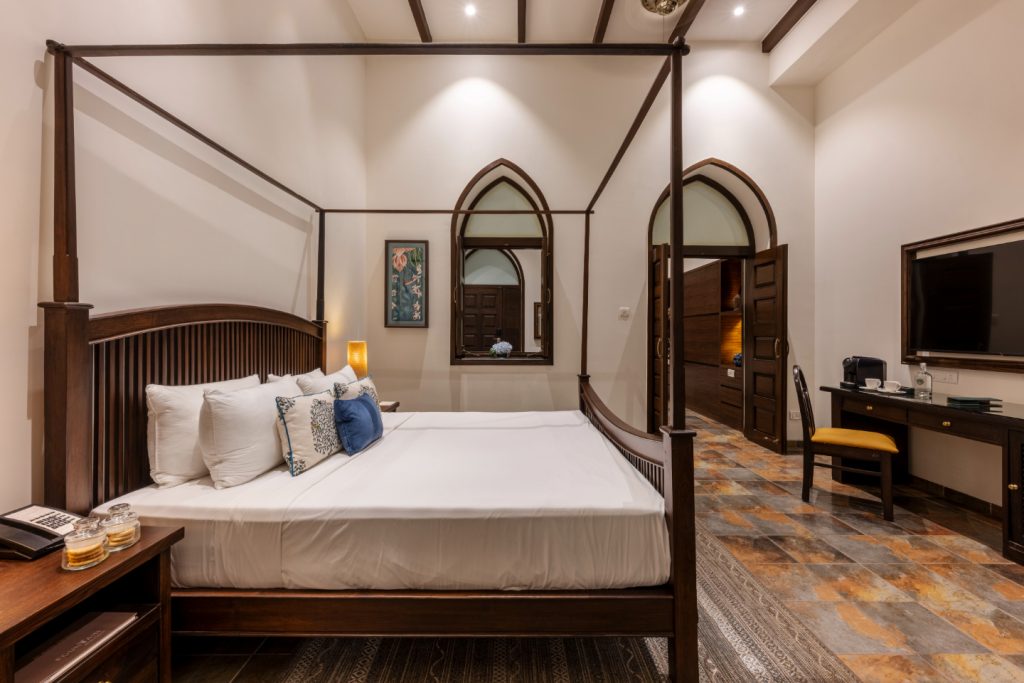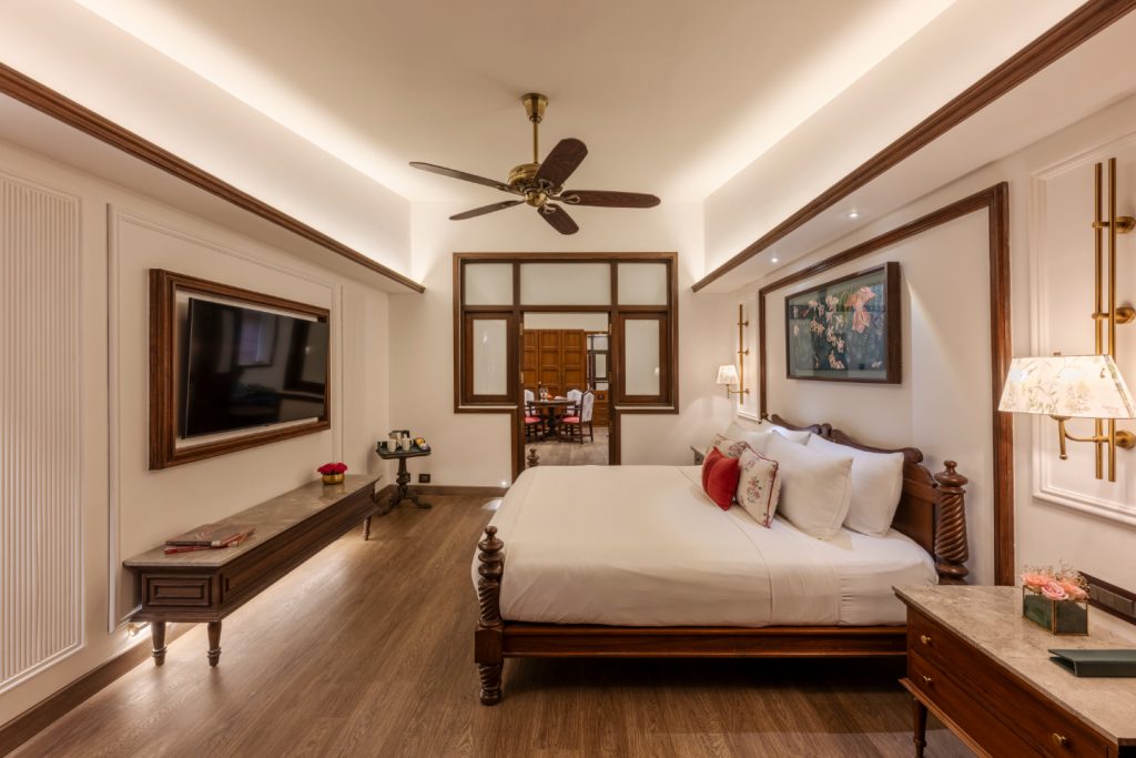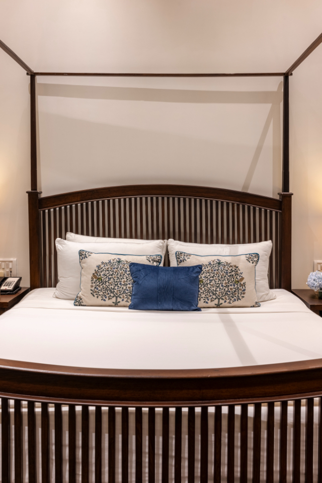 This multiplicity isn’t seen as a flaw but as a strength — each room offering a distinct narrative, shaped by the era in which it was built. There are antique beds that are over a century old, refinished and reframed in updated suites.