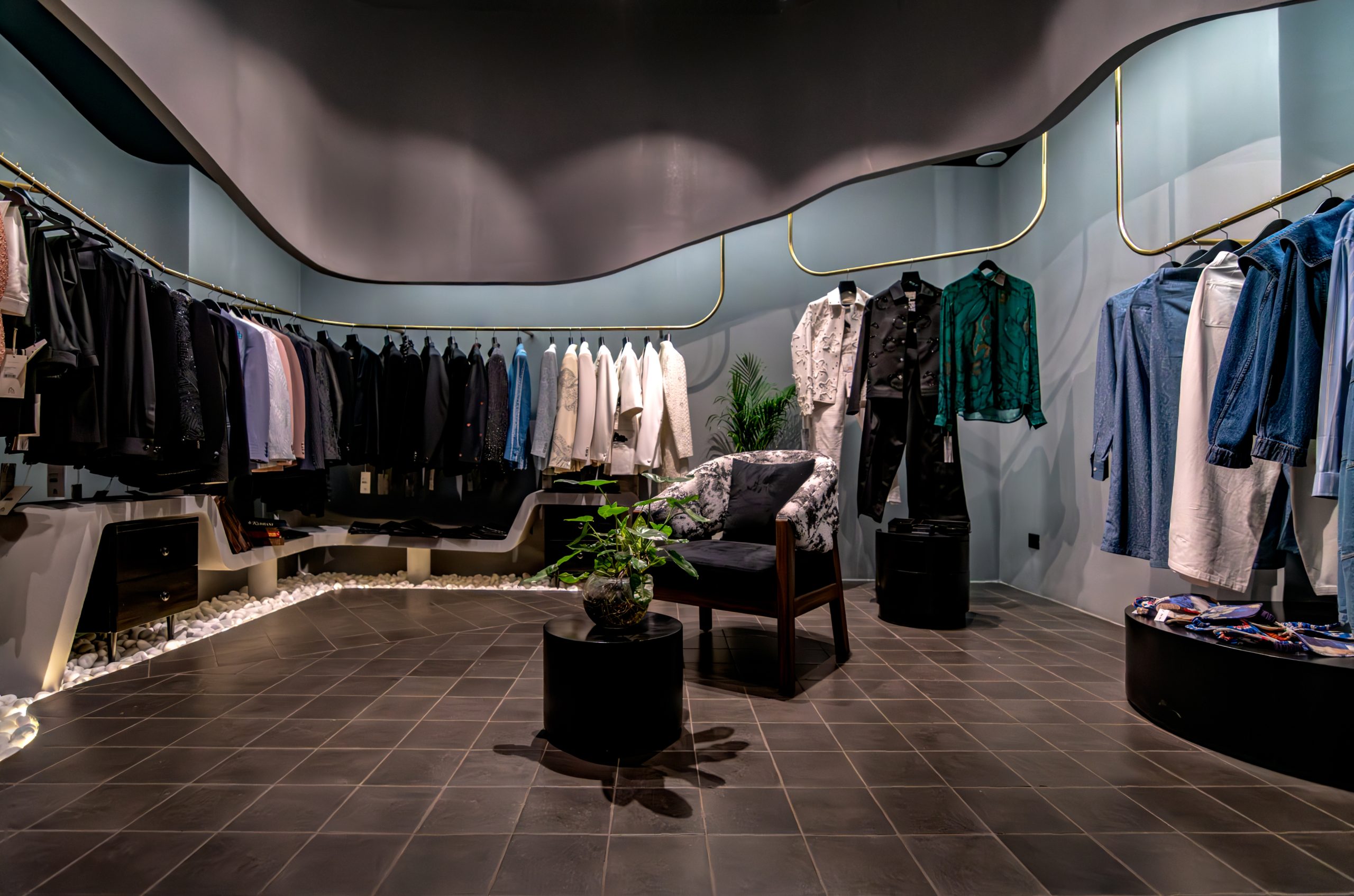 These curves are not merely formal gestures; they actively choreograph movement. The design unfolds sightlines gradually, allowing visitors to discover garments rather than confront them all at once. The spatial sequencing slows down the pace of browsing, encouraging engagement and tactile interaction—an increasingly valuable quality in physical retail environments competing with digital platforms.