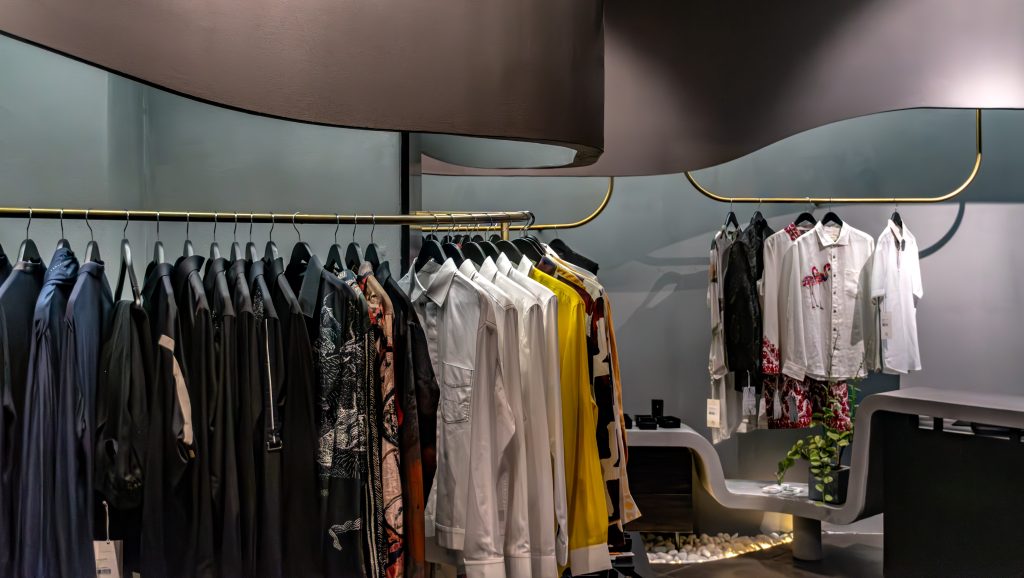 Lighting plays a central role in shaping the spatial experience. Designers seamlessly integrate concealed fixtures within partitions, shelving, and ceiling layers, creating a soft, ambient glow that washes over garment displays. This approach eliminates visual clutter while ensuring that the clothing remains the focal point.