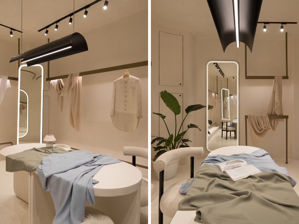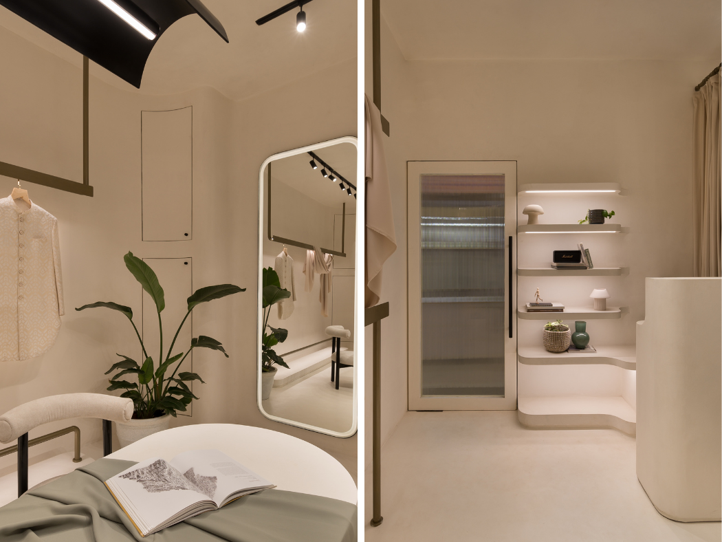 In essence, the store unfolds as an immersive exhibit, an architectural envelope that elevates the user’s experience of tailored menswear. It is a space where Indian tradition and Western refinement find common ground, articulated through a vocabulary of contemporary minimalism and tactile luxury.