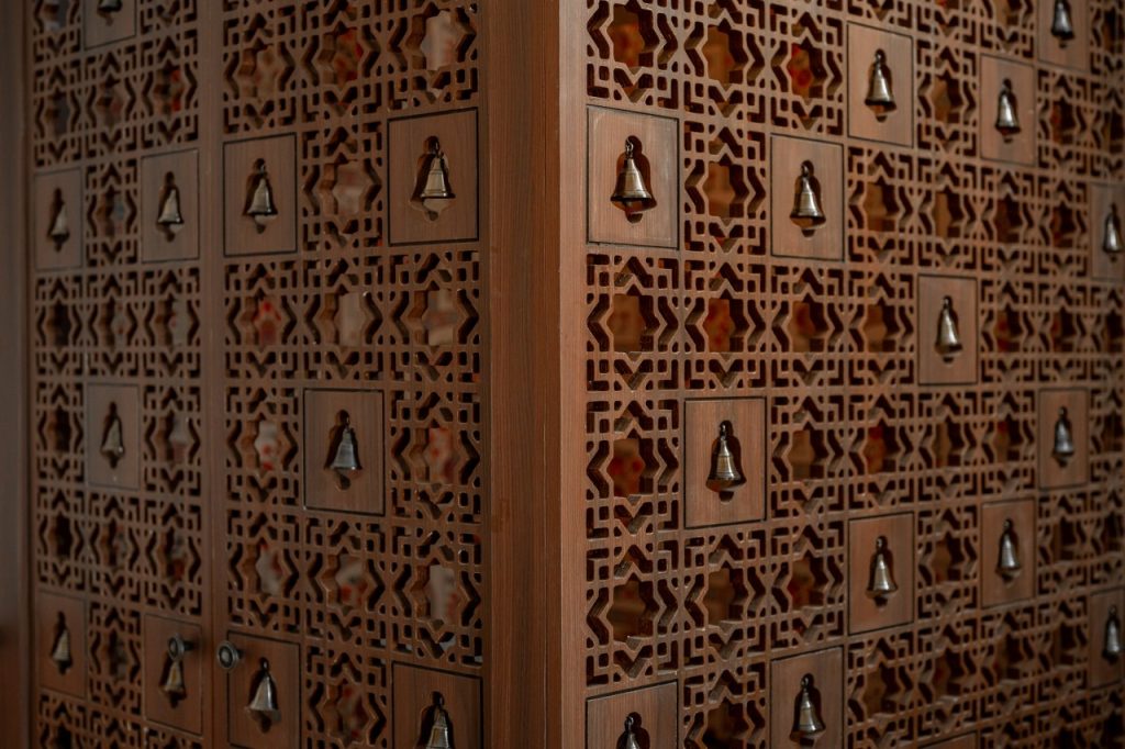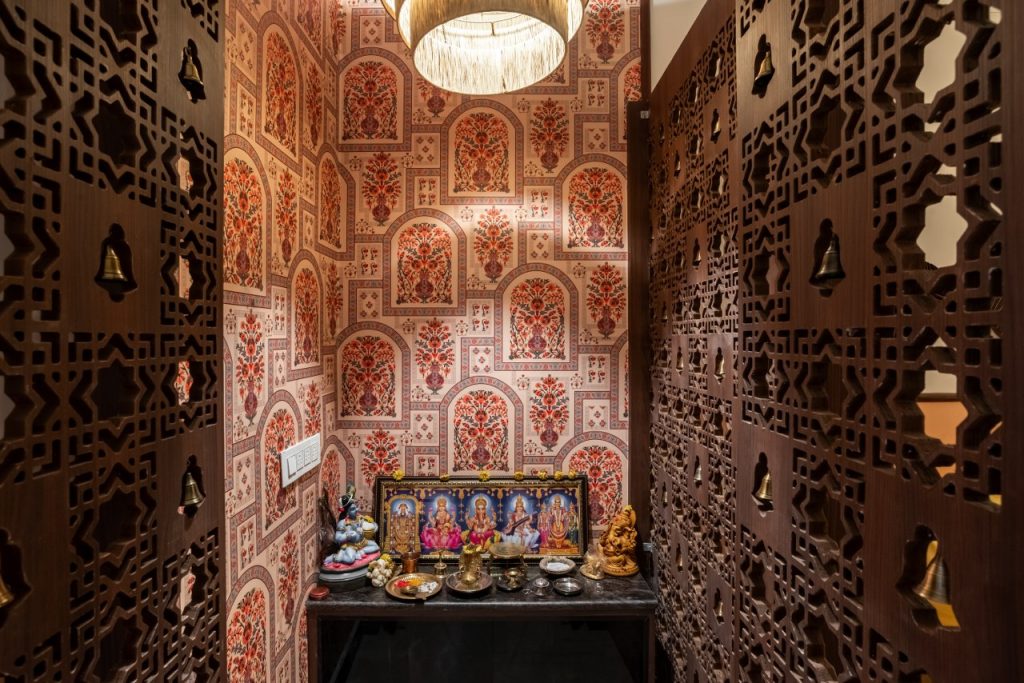 The living room formed the core of our design concept, as it needed to harmoniously reflect the tastes of three generations living under one roof. We envisioned a fusion of ethnic charm and modern elegance to bring together diverse preferences. “The designer thoughtfully curated traditional artworks and wall décor to add cultural depth. They crafted the temple space within the living room with intricate carvings that celebrate heritage.”