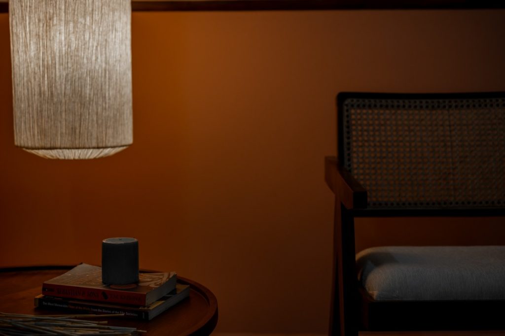 The lighting choices—crafted from banana fibre—enhanced the organic feel of the space, while their sleek, modern forms reinforced the idea of fusion, creating a cohesive and soulful living environment.