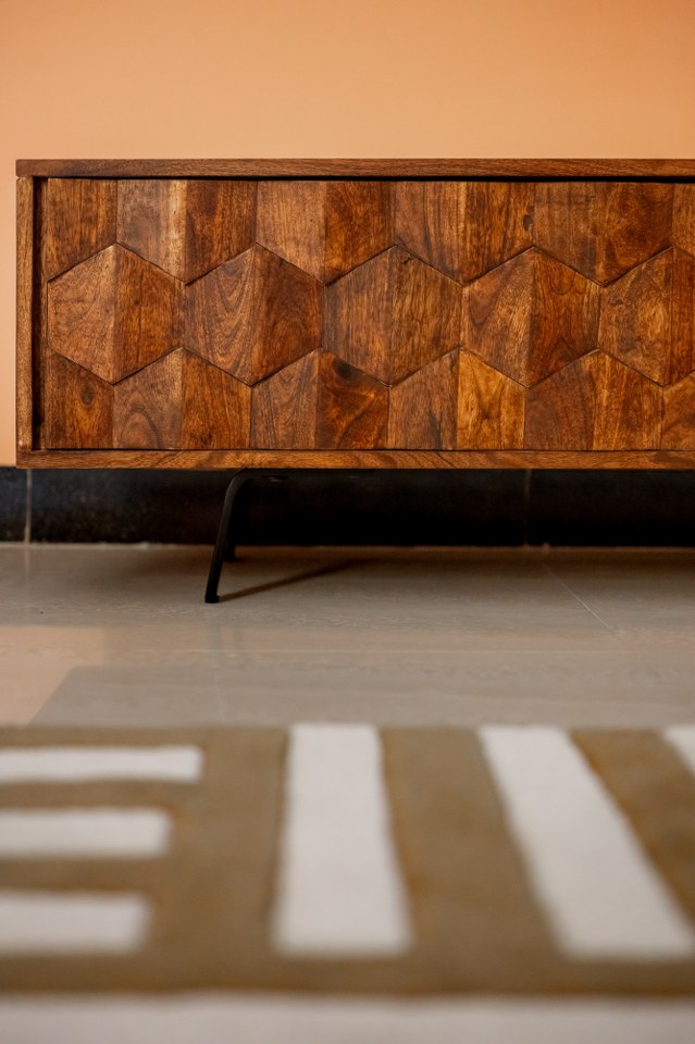 To maintain a nostalgia and a grounded, earthy tone, we opted for warm hues in the furniture. This was paired with modern silhouettes that introduced a sense of freshness and balance. The geometric patterns on the rug added a subtle layer of contemporary character while staying rooted in natural brown tones.