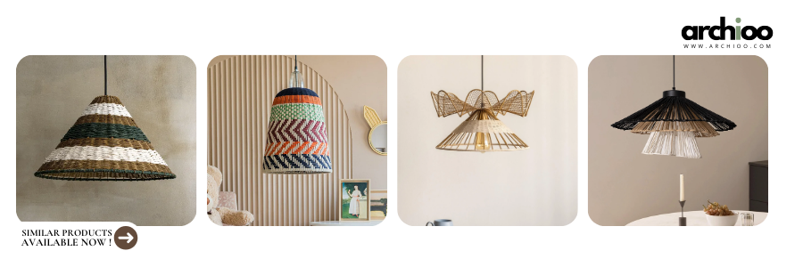 Across the room, the dining area speaks a slightly more refined language. A stone-top dining table sits beneath a stunning custom cane-and-metal chandelier, suspended by beautiful wooden rafters running across the ceiling that houses ambient lighting and introduces warmth and tactility overhead.