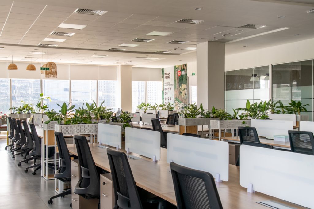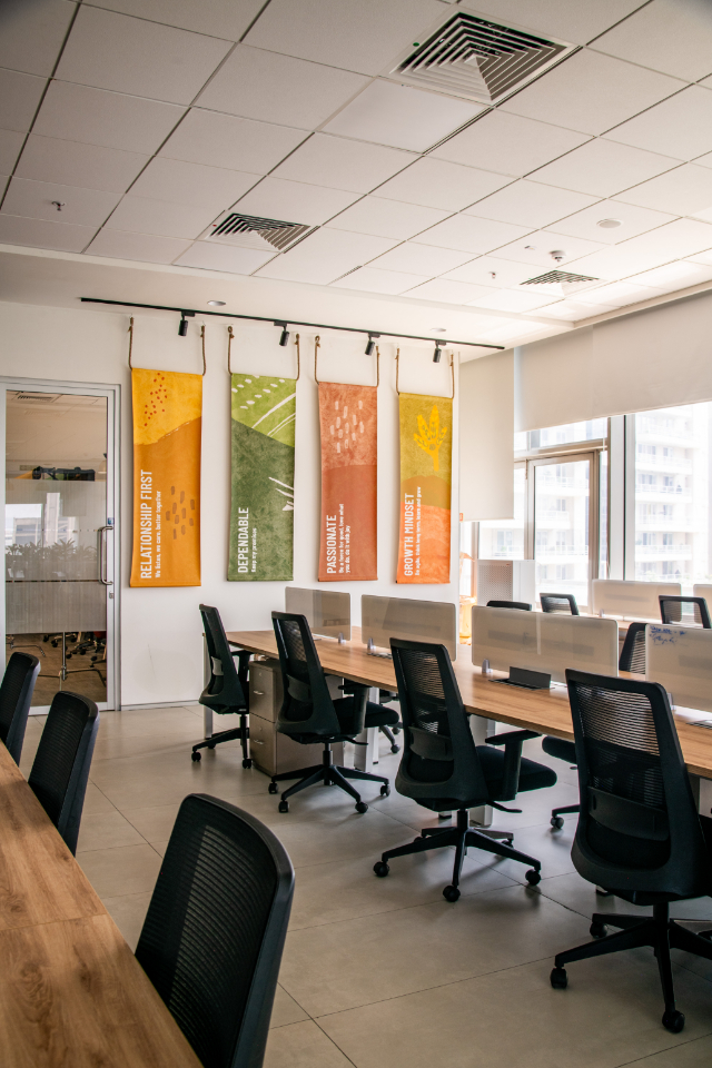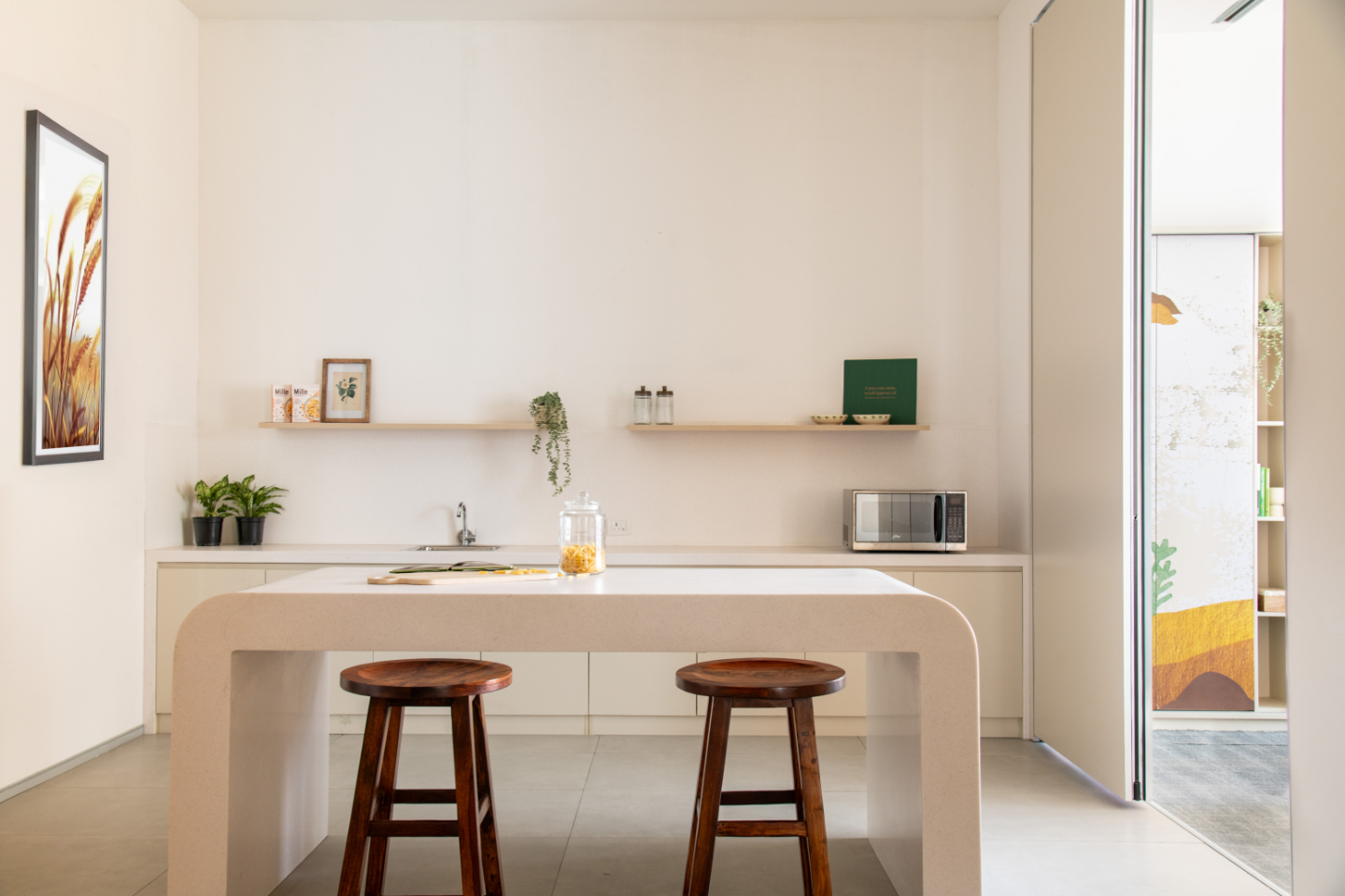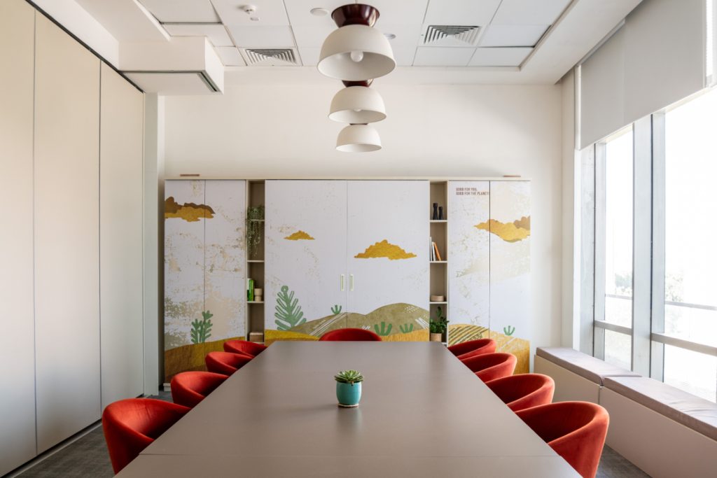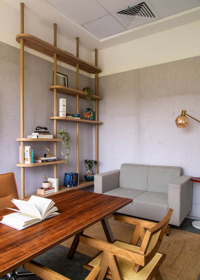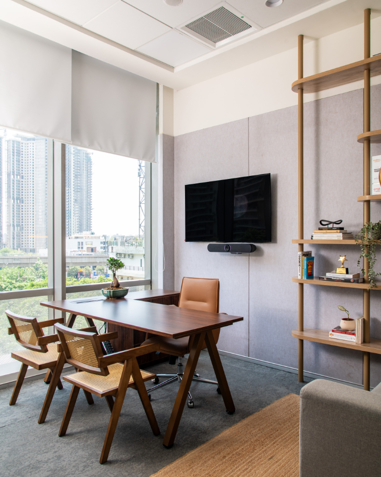 Meeting rooms named after millets and grains celebrate sustainability, while materials like rattan, jute, wood, and plants infuse the space with natural warmth.