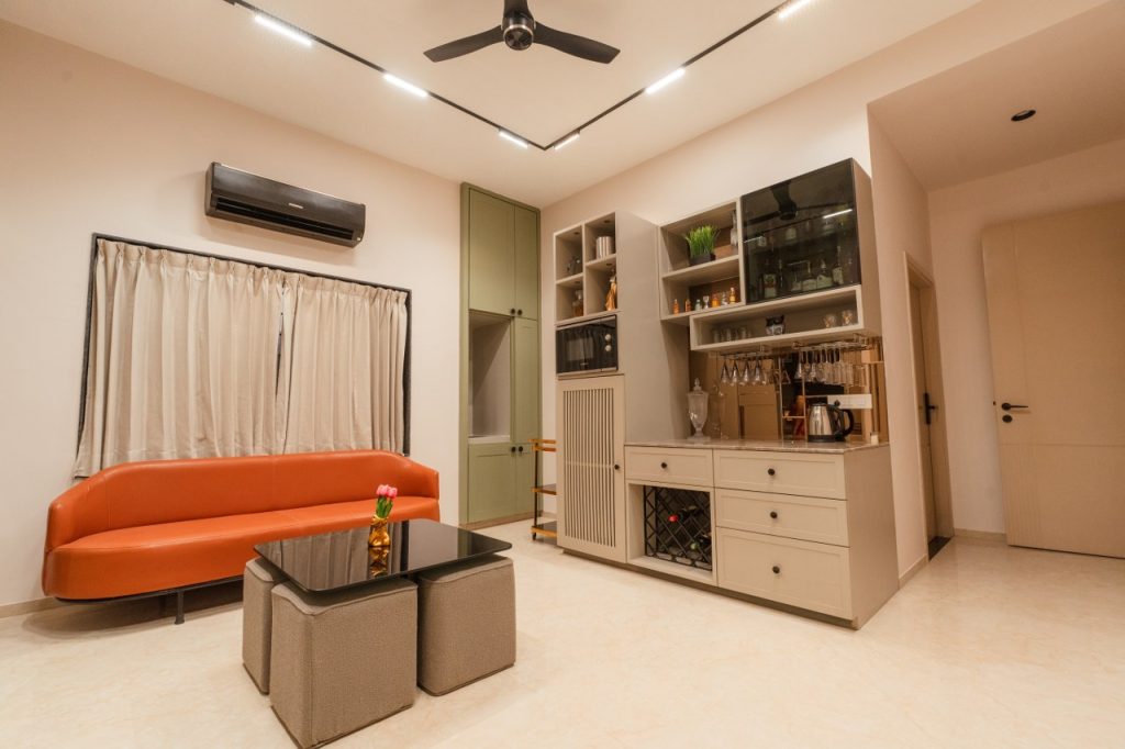 Products / Materials / Vendors: Wallcovering / Cladding – Flex stone(Brick Clad), Pokharna Paints (Wall Texture) / Construction Materials – Balaji Enterprises (Ultratech) / Lighting – Wall Craft / Doors and Partitions -Regal Plywood (Teak Wood) / Sanitaryware – Hindustan Sanitary, Shreenath Sanitary (Kohler, Jaguar) / Facade Systems – Altaf Hussain Ironworks (CNC & Vertical MS pipes), Leo Aluminiums (Aluminium Glass Railings) / Windows –Bhavani Aluminium(System Aluminium) / Furniture – Mangal Murti Furniture and Handloom (Wooden) / Flooring – Sanjay Sanitary (Vitrified Tiles) / Kitchen – Hafele Paint –Pokharna Paints (Jewel and Asian paint) / Artefacts/Decor – Murli Sharma Arts, Aditi Arts / Hardware – Micro Hardware (Yale, Hafele)