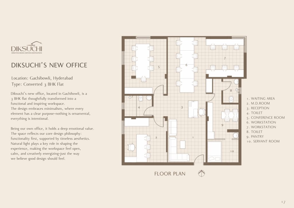 In the heart of Hyderabad, where urban rhythms and earthy materials pulse against traditions, Mrudula, founder of Diksuchi Design Studio discovered something transformative within a modest three-bedroom apartment. The moment she stepped onto the site, she knew she had found home for her creative vision. This was her canvas for reimagining what her architectural studio would become.