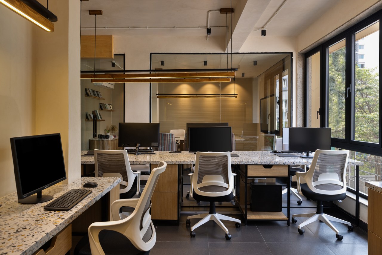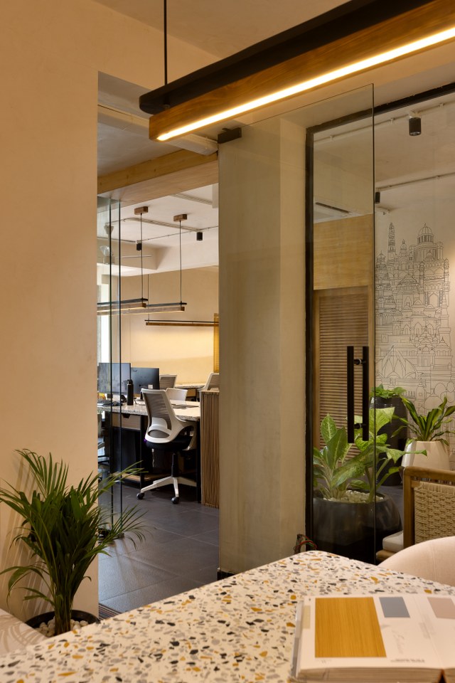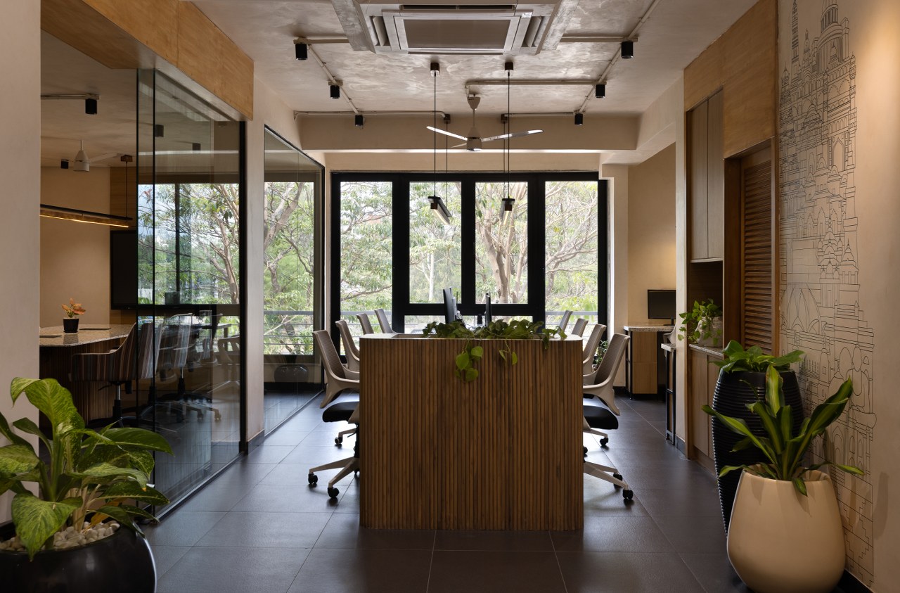 Urban Rhythms And Earthy Materials Transform This 3BHK Into a Modest Office | Diksuchi Design Studio